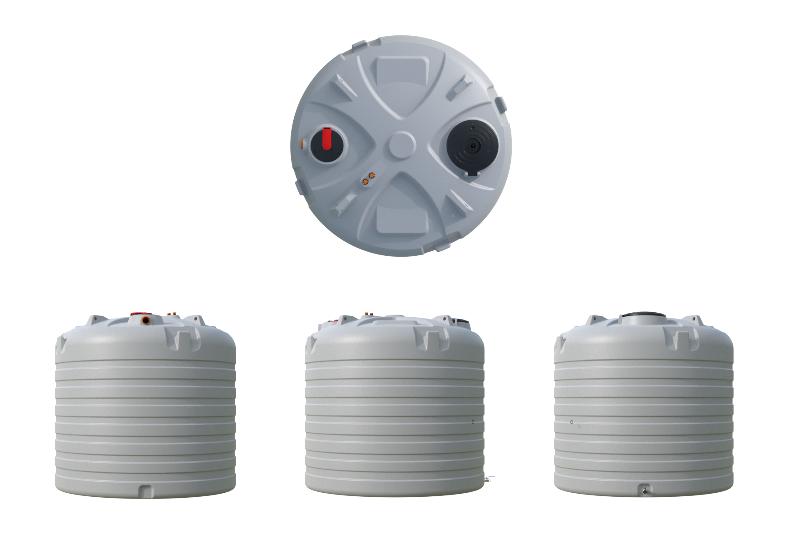 Solidna konstrukcja z wysokiej jakości polietylenu gwarantuje trwałość i odporność na warunki atmosferyczne, a włazy rewizyjne Ø400 i Ø600, uchwyty oraz zawór 2” STORZ zapewniają łatwą obsługę i wygodny serwis.